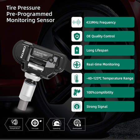 - 【NO SENSOR PROGRAMMING REQUIRED 】The tire pressure monitor system (TPMS) come pre-programmed specifically for your make/model/year of vehicle,will instantly registered to the truck TPMS monitoring by themselves after mounted the new wheels and tires and took a test drive