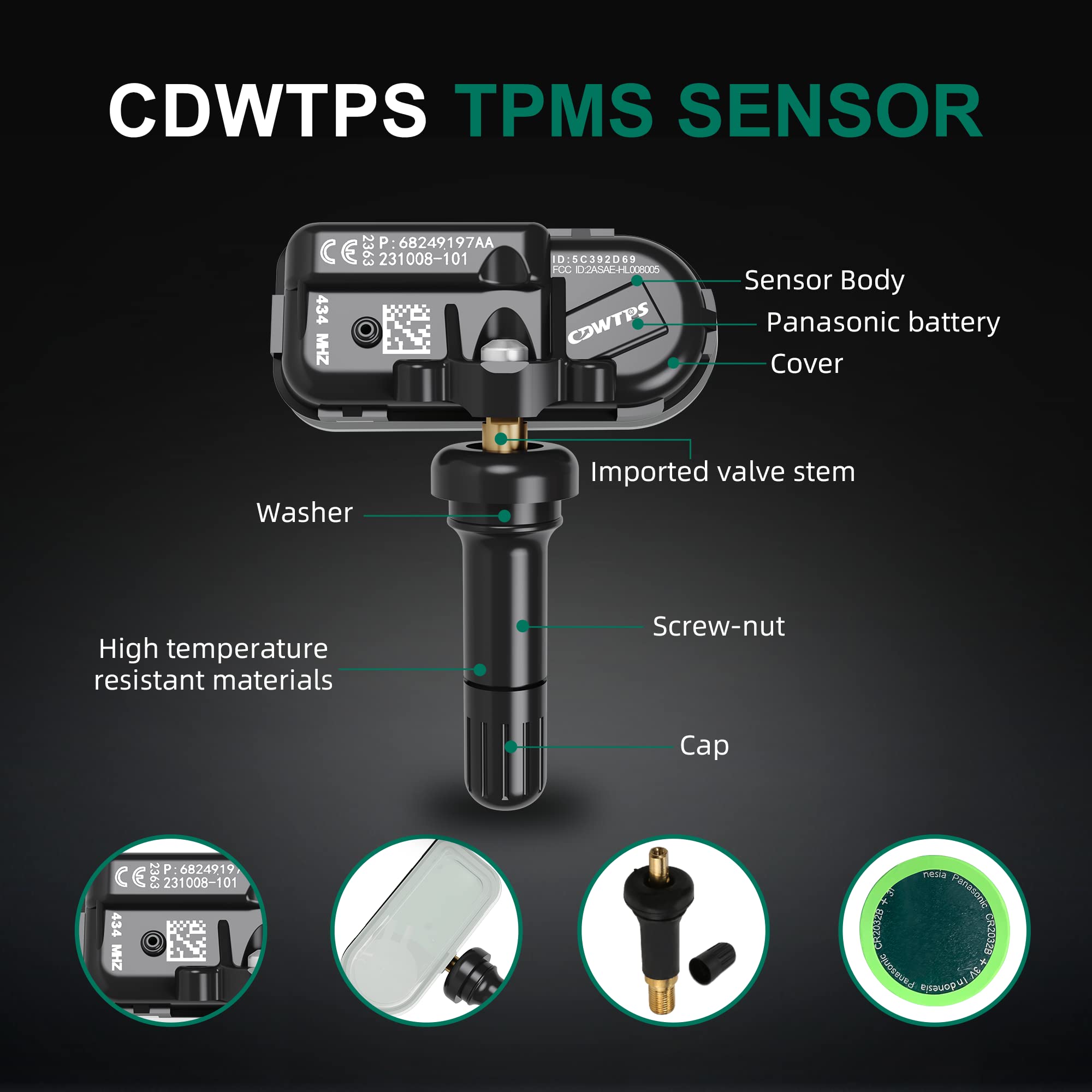 CDWTPS 68249197AA RAM Tire Pressure Sensor(TPMS) 434MHz 68239720AA 68157568AA Tire Pressure Monitoring System Fits for 2014-2017 Dodge Ram 1500 2500 3500