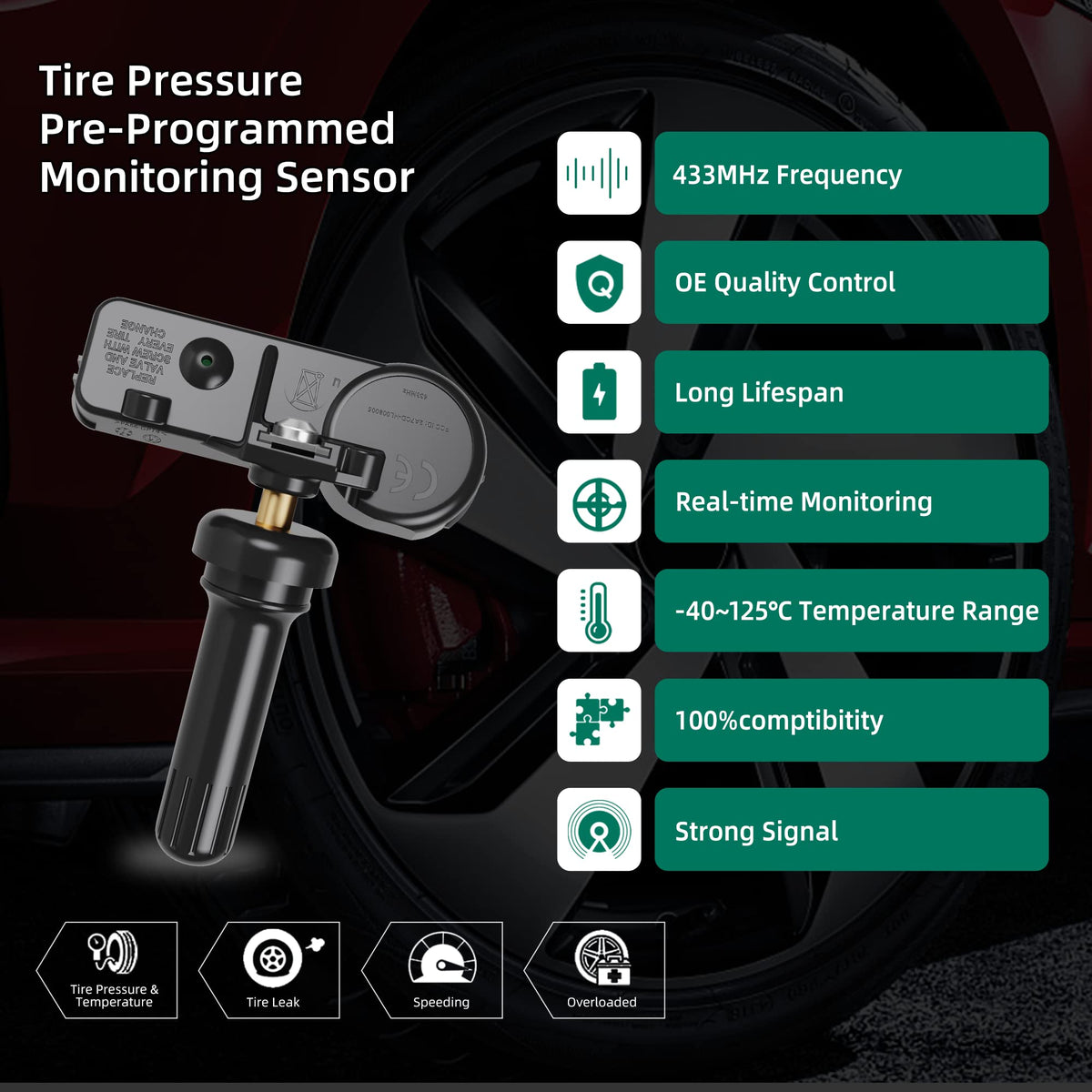 - 【NO SENSOR PROGRAMMING REQUIRED 】The tire pressure monitor system (TPMS) come pre-programmed specifically for your make/model/year of vehicle,will instantly registered to the truck TPMS monitoring by themselves after mounted the new wheels and tires and took a test drive